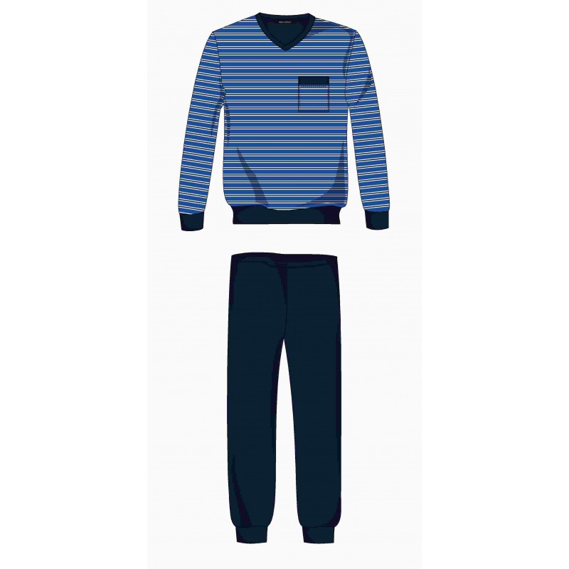 Bomuldspyjamas med brystlomme om manchet ved ærme og ankel