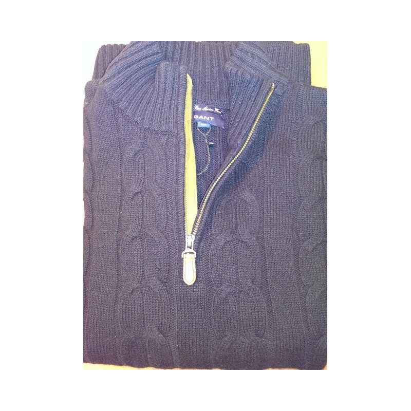 Kabelstrik Sweater med Zip-hals fra GANT